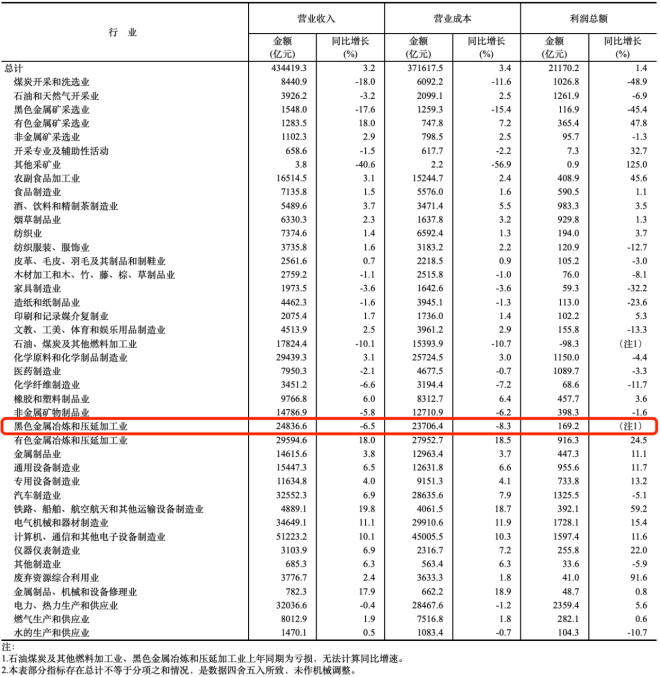 1—4月份黑色金屬冶煉和壓延加工業利潤總額169.2億元,同比由虧轉盈