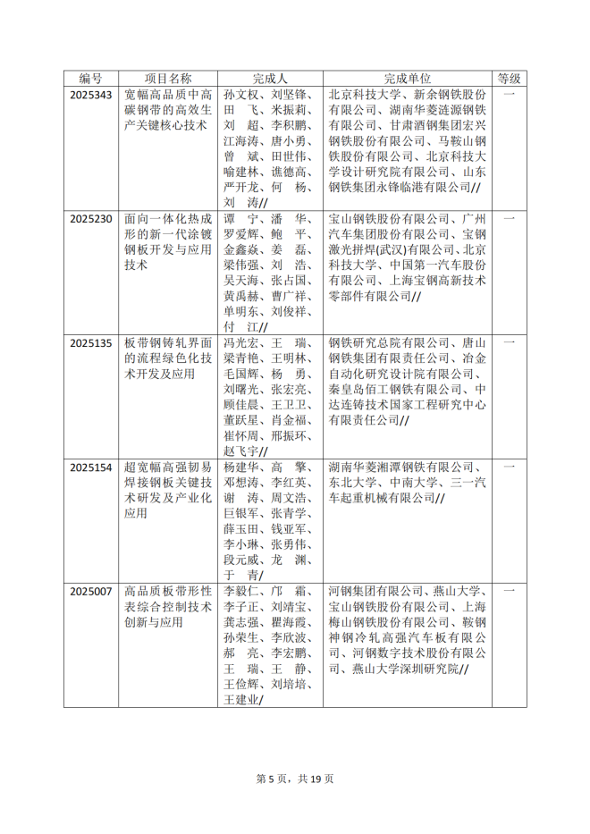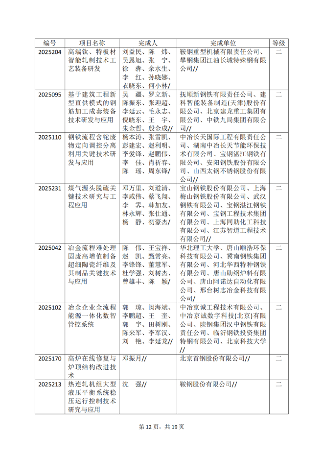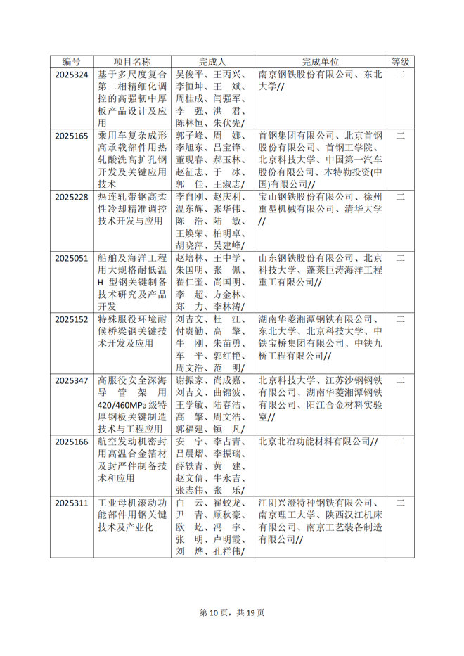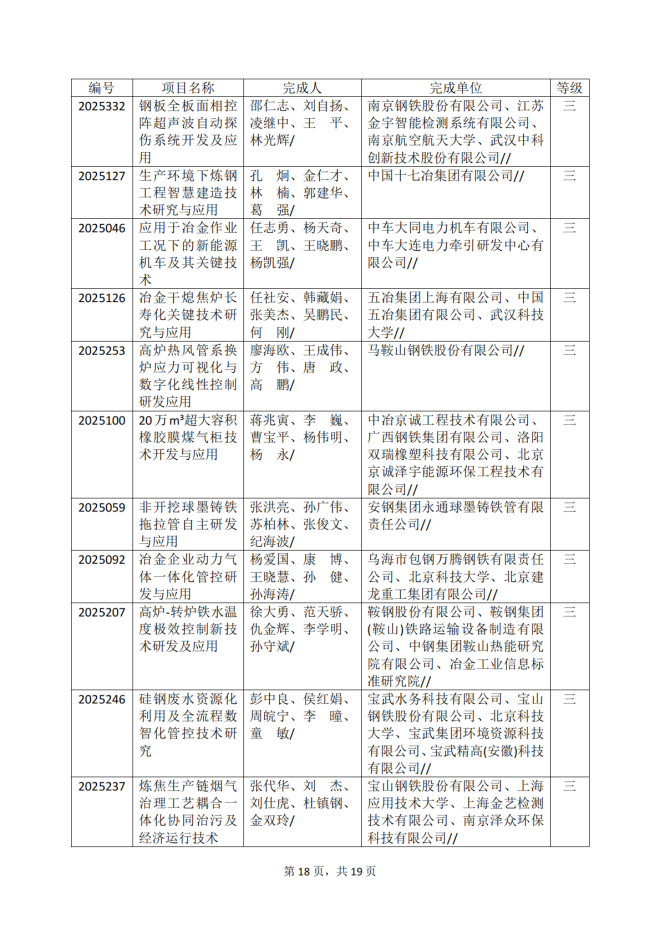 2025年冶金科學技術獎專業評審推薦獲獎項目公告
