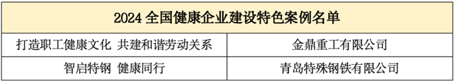 青島特鋼、金鼎重工擬入選2024全國健康企業建設案例