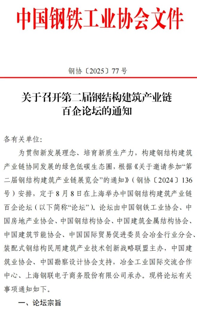 關於召開第二屆鋼結構建築產業鏈百企論壇的通知