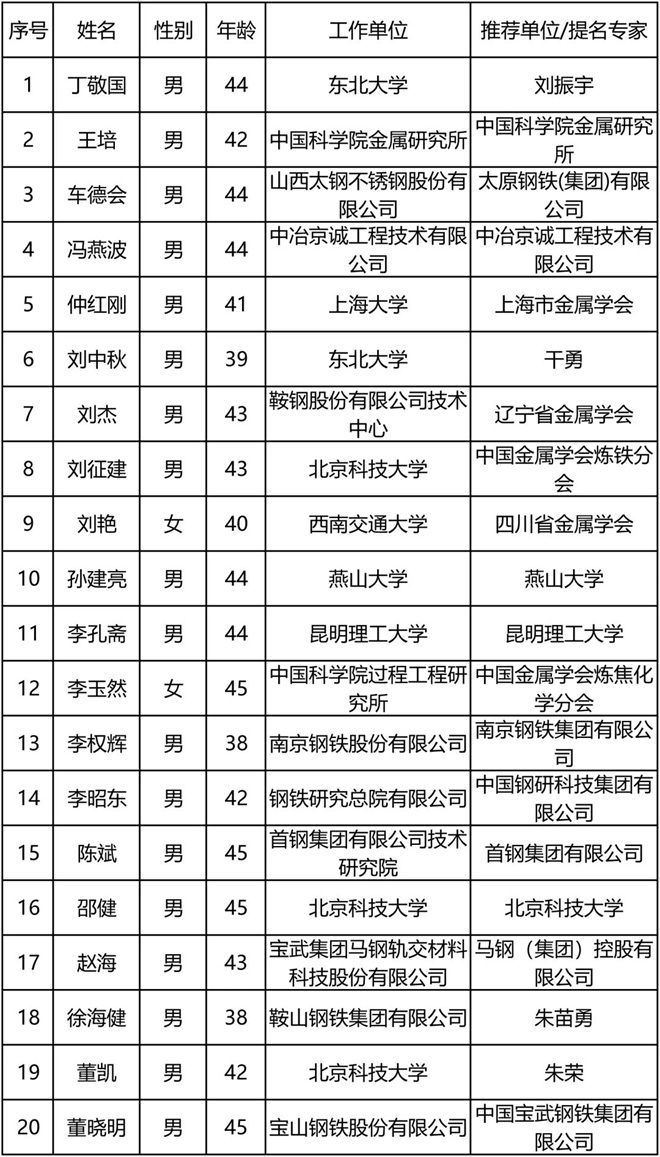 這20位同誌是近年來我國冶金青年科技工作者的傑出代表。他們刻苦鑽研,銳意進取,創先爭優,在冶金材料科研、生產、設計等方麵成績突出,為推動我國冶金科技的發展做出了突出貢獻。
