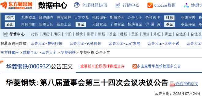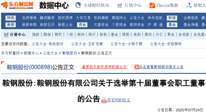 7月24日,鞍鋼股份發布公告。