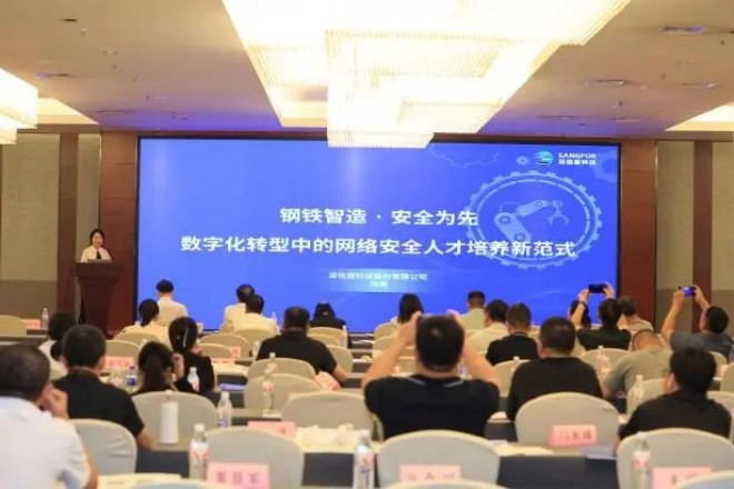 深信服科技培訓認證部政企業務負責人徐璐作題為《鋼鐵智造安全為先數字化轉型中的網絡安全人才培養新範式》的主旨報告