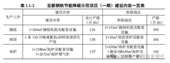 河南亞新鋼鐵集團有限公司建設項目產能置換方案分別於2017年12月15日、2023年11月16日在河南省工業和信息化廳予以公告,其中高爐煉鐵產能置換方案為退出廠區現有2座630m3高爐,建設1座1580㎡高爐,轉爐煉鋼能置換方案為退出廠區現有1座65噸轉爐(100萬噸),並在安陽華城博鑫棒材有限公司2座40噸轉爐(80萬噸)、安陽彙鑫特鋼有限公司2座40噸轉爐部分產能(24萬噸)基礎上置換建設1座150噸轉爐,並配套鐵水KR脫硫預處理、LF精煉和RH精煉。