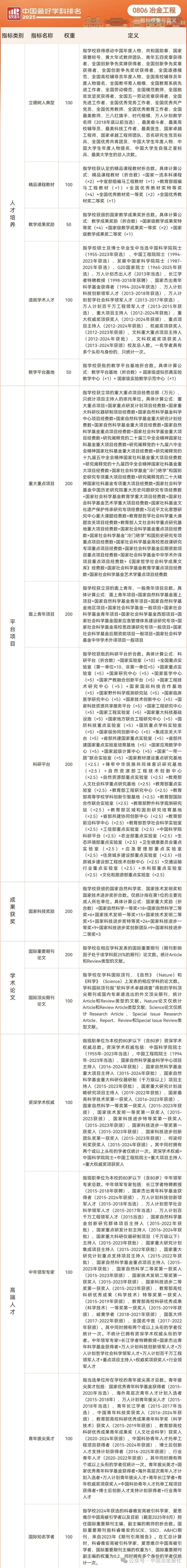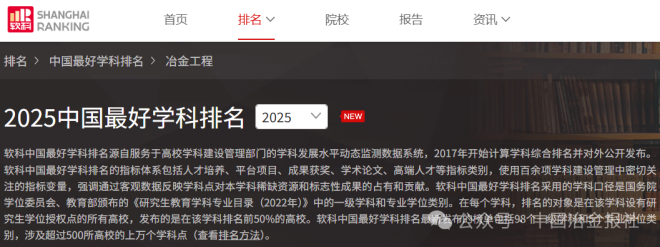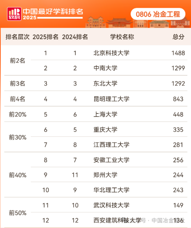 2025年冶金工程“最好學科”排名來了,看看你的母校排第幾?