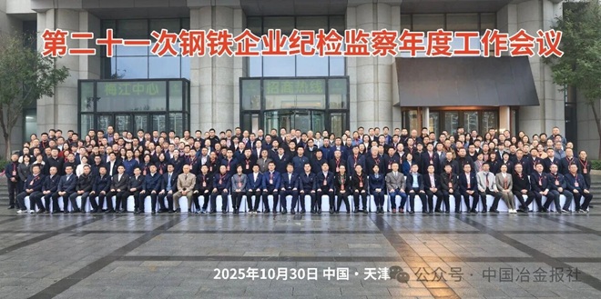在全國上下深入學習貫徹黨的二十屆四中全會精神的重要時刻,在鋼鐵行業“紀檢監察工作規範化法治化正規化(以下簡稱“三化”)建設年”行動深入開展之際,第二十一次鋼鐵企業紀檢監察年度工作會議於10月30日-31日在天津召開。會議深入學習貫徹黨的二十屆四中全會精神,總結工作、交流經驗、培訓輔導、現場學習,共同為鋼鐵企業紀檢監察組織助力鋼鐵行業奮力實現“十五五”發展目標凝聚新共識、謀劃新思路。會議由全國鋼鐵企業紀檢監察工作研究會(以下簡稱研究會)主辦,首鋼集團紀委承辦、首鋼股份紀委協辦,來自中國鋼鐵工業協會(以下簡稱鋼協)會員單位及所屬企業的紀檢監察幹部,以及鋼協係統專兼職紀檢幹部240餘人參加了會議。