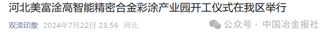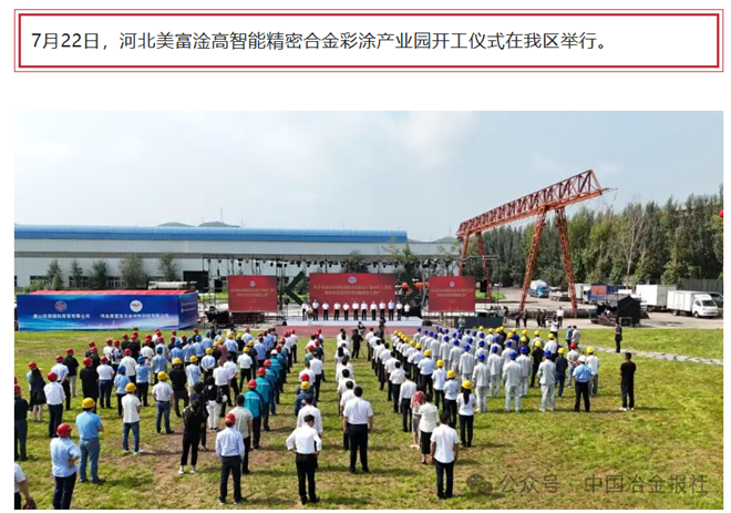 2024年7月22日,河北美富淦“高智能精密合金彩塗產業園”項目在雙灤區正式舉行開工儀式,承德市政協主席、黨組書記吳清海出席並宣布項目開工。