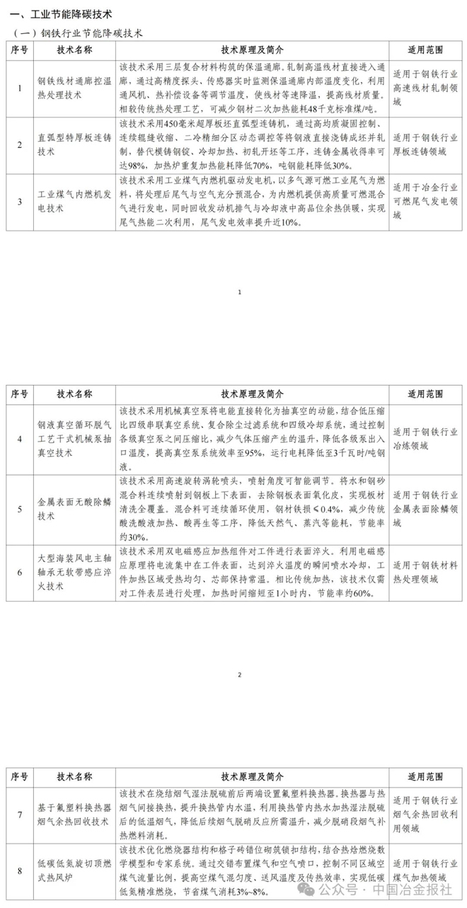 2025年鋼鐵行業節能降碳技術推薦目錄發布
