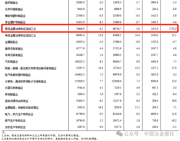 1—11月份,主要行業利潤情況如下:計算機、通信和其他電子設備製造業利潤同比增長15.0%,電力、熱力生產和供應業增長11.8%,黑色金屬冶煉和壓延加工業同比增長1752.2%,利潤總額為1115.0億元,有色金屬冶煉和壓延加工業增長11.1%,汽車製造業增長7.5%,農副食品加工業增長4.8%,通用設備製造業增長4.8%,專用設備製造業增長4.6%,電氣機械和器材製造業增長4.2%,石油、煤炭及其他燃料加工業同比減虧,非金屬礦物製品業下降4.6%,化學原料和化學製品製造業下降6.9%,紡織業下降8.2%,石油和天然氣開采業下降13.6%,煤炭開采和洗選業下降47.3%。