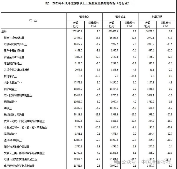12月27日,國家統計局網站發布《2025年1—11月份全國規模以上工業企業利潤增長0.1%》一文。