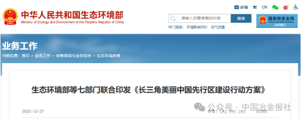 12月27日,從中華人民共和國生態環境部網站獲悉,生態環境部等七部門聯合印發《長三角美麗中國先行區建設行動方案》(簡稱《長三角行動方案》)、《京津冀美麗中國先行區建設行動方案》(簡稱《京津冀行動方案》)。