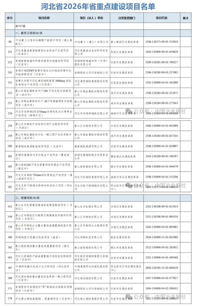 鋼鐵項目有這些!河北省發布2026年省重點建設項目名單