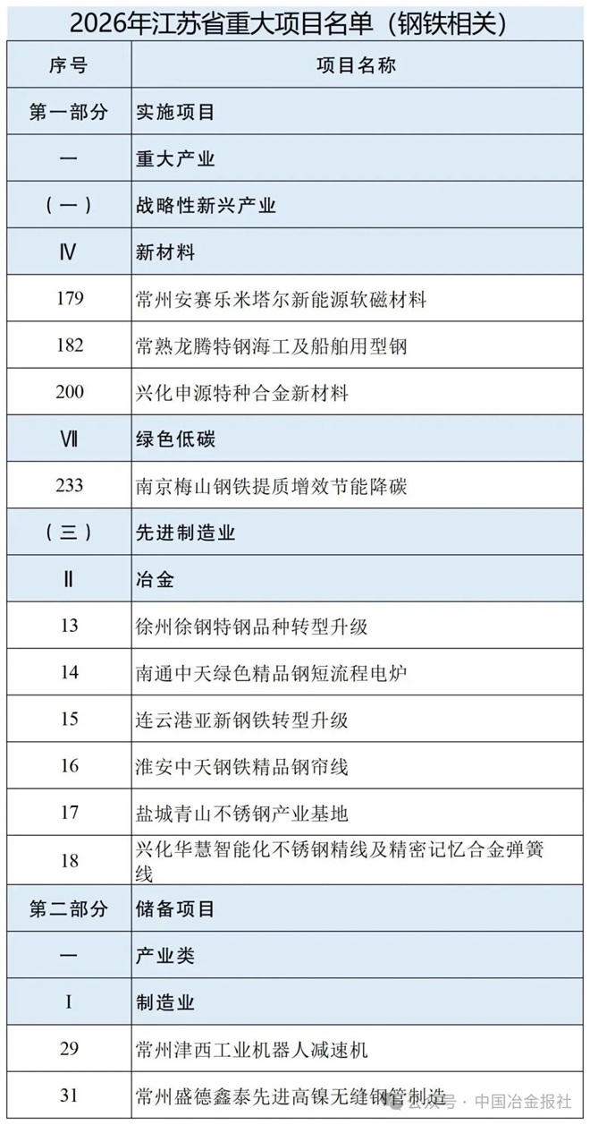 2026年江蘇省重大項目清單發布,鋼鐵項目有這些