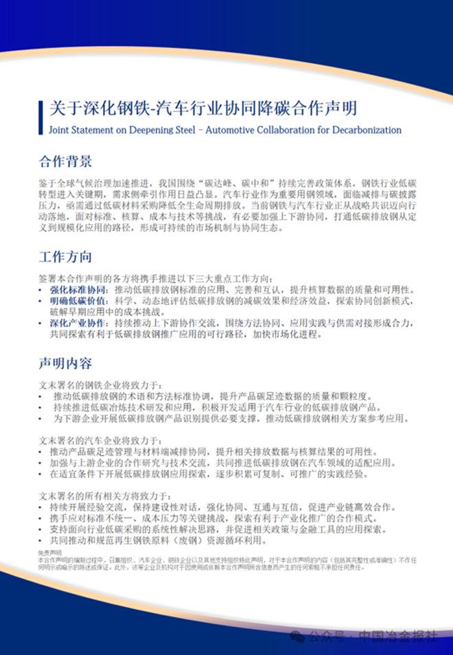 深化鋼鐵-汽車行業協同降碳合作聲明: