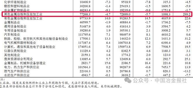 黑色金屬冶煉和壓延加工業2025年利潤總額1098.3億元