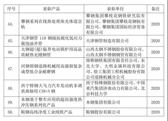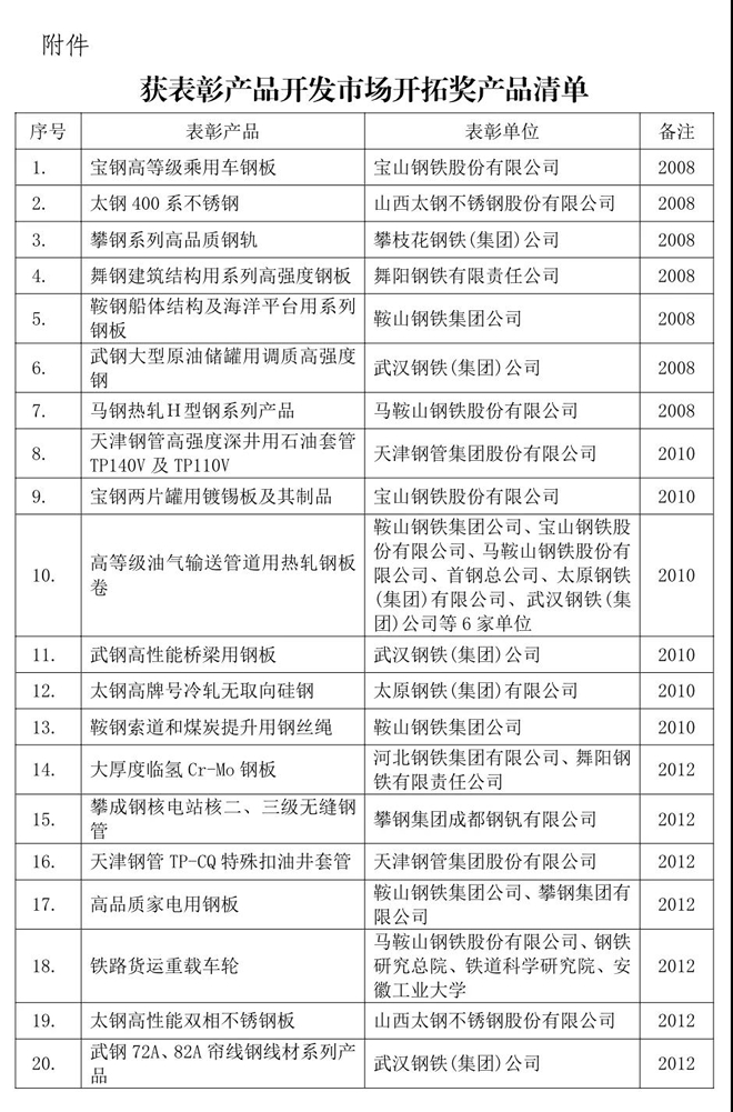 據悉,目前共有19家企業獲“中國鋼鐵工業清潔生產環境友好企業”榮譽稱號、50項產品獲“中國鋼鐵工業產品開發市場開拓獎”。