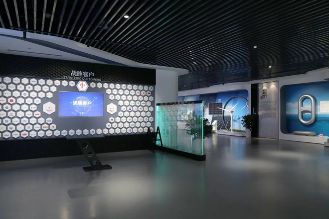 圖為中信泰富特鋼展廳戰略合作客戶牆。(資料照片)