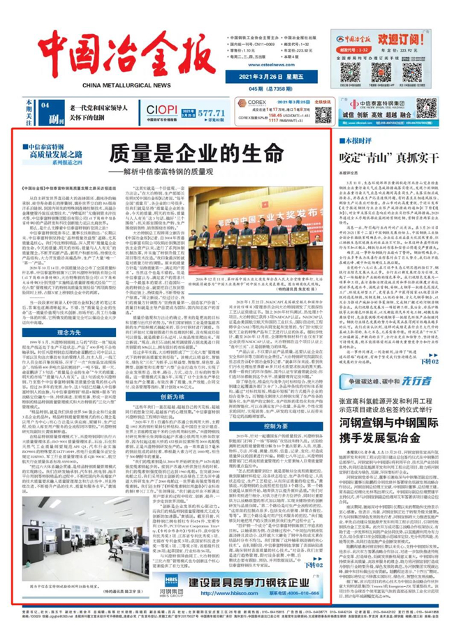 《中國冶金報》中信泰富特鋼高質量發展之路采訪報道組