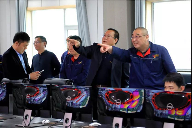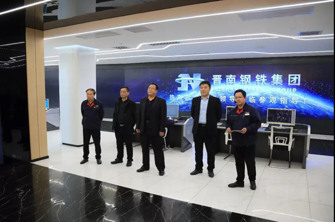 圖為陳玉千一行參觀晉南鋼鐵智能中心。