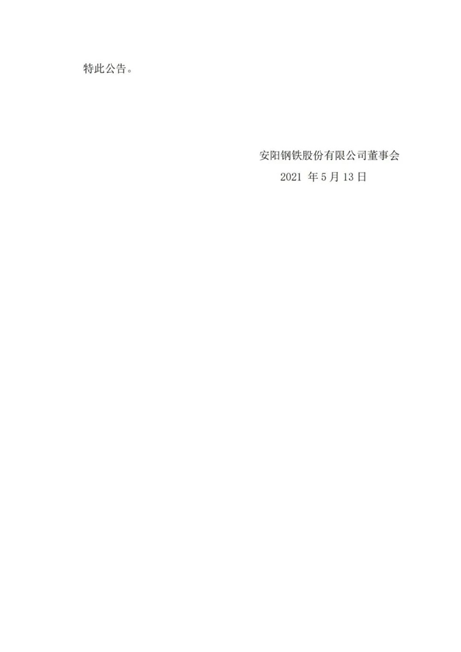 5月13日,安陽鋼鐵股份有限公司(以下簡稱“公司”)發布公告,稱其接控股股東安陽鋼鐵集團有限責任公司(以下簡稱“安鋼集團”)函告,安鋼集團擬進行混合所有製改革,江蘇沙鋼集團有限公司(以下簡稱“沙鋼集團”)擬參與安鋼集團的混合所有製改革,雙方於2021年5月13日簽訂了《沙鋼集團參與安鋼集團混合所有製改革意向協議書》(以下簡稱“《意向協議書》”)。