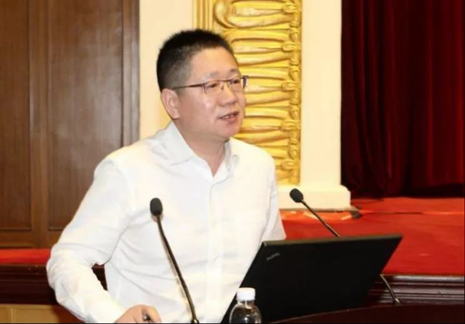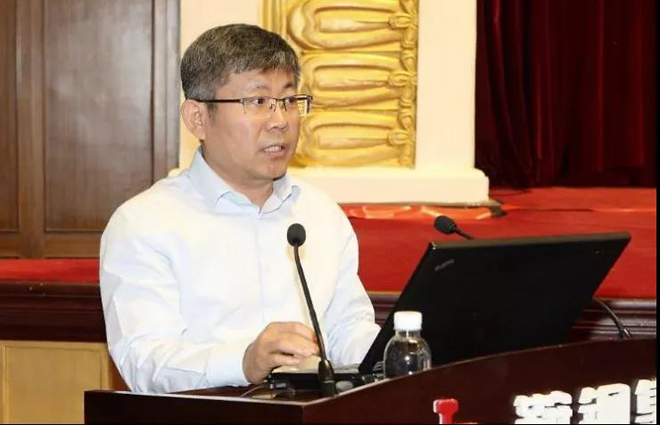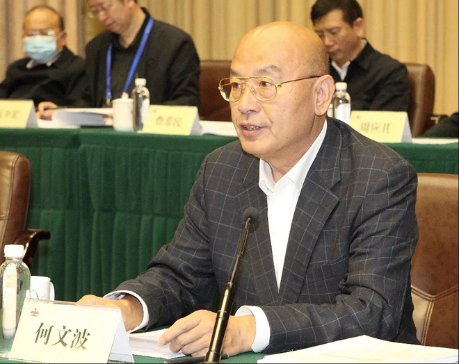 圖為中國鋼鐵工業協會黨委書記、執行會長何文波講話