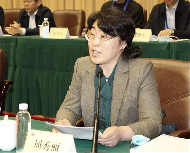 圖為中國鋼鐵工業協會副會長兼秘書長屈秀麗主持會議