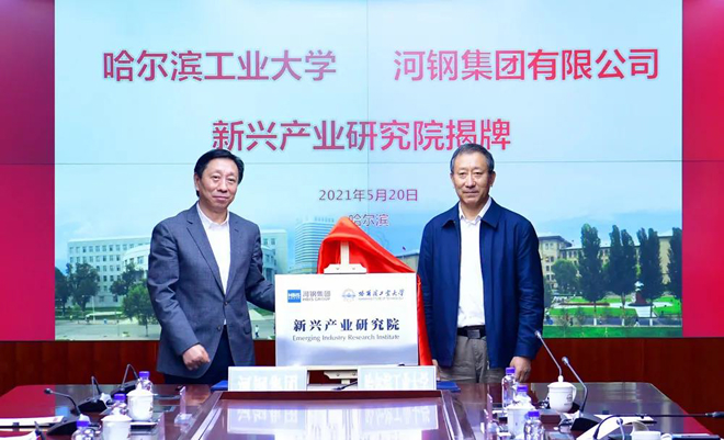 河鋼集團黨委書記、董事長於勇與哈工大校長、中國工程院院士周玉圍繞深化校企合作進行了深入交流,現場見證簽約,並為“河鋼—哈工大”新興產業研究院揭牌。
