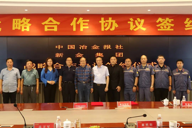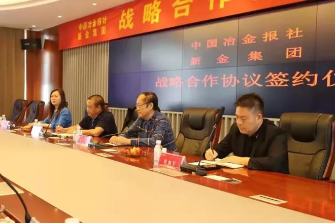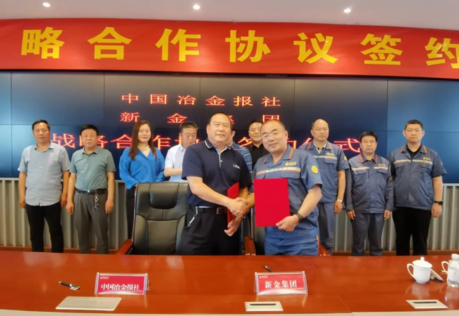 5月25日,新金集團鋼鐵公司執行總經理陳丹峰與中國冶金報社黨委書記、社長陳玉千分別在協議書上簽字,雙方就此建立長期戰略合作關係。