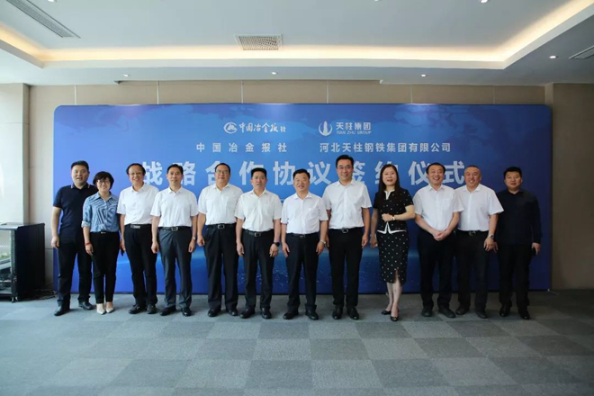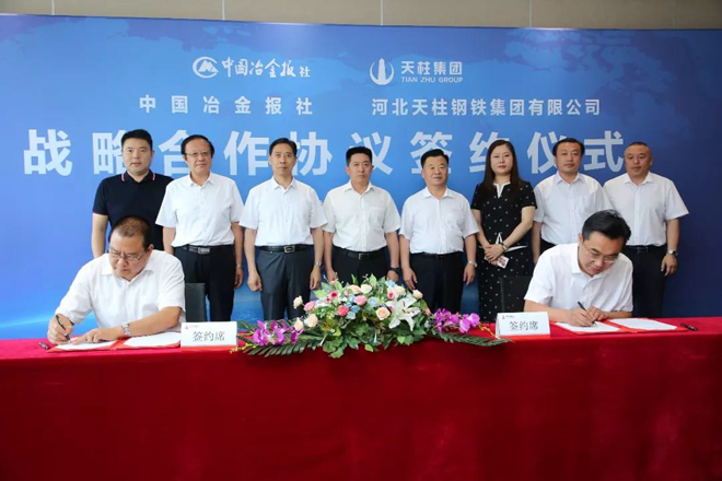 6月8日,隨著河北天柱鋼鐵集團有限公司(以下簡稱“天柱集團”)總經理、天柱集團海港項目總指揮劉巍與中國冶金報社黨委書記、社長陳玉千分別代表雙方在協議書上簽字,中國冶金報社與天柱集團就此建立起長期戰略合作關係。根據協議,未來三年內,雙方將在“突破卡脖子技術你最牛”“百年輝煌·鋼鐵尋冠”、企業搬遷調整、轉型升級和產品品牌塑造全媒體宣傳推廣、信息谘詢、市場調研、輿情監控、宣傳片拍攝等方麵展開全麵、深入、長期合作。