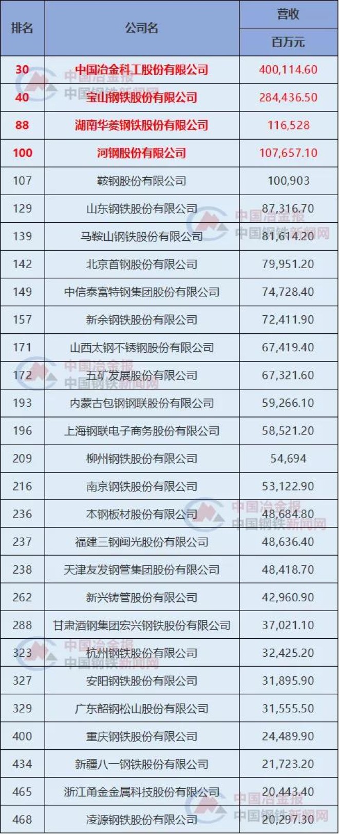 2021年《財富》中國500強揭曉,這些鋼鐵相關企業上榜!