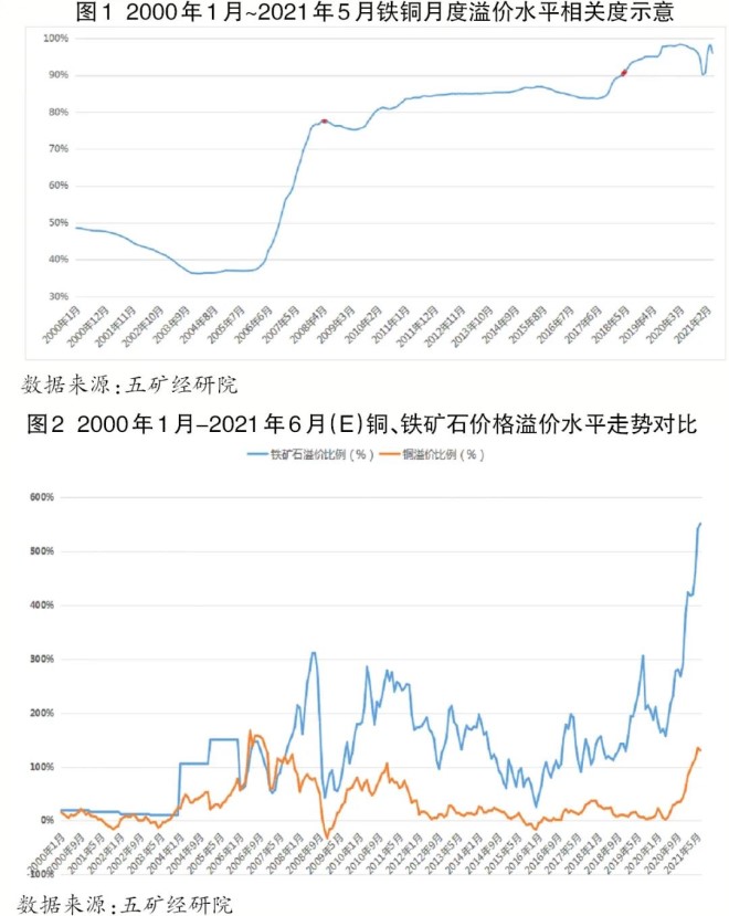 階段四:2018年5月至今,鐵銅溢價水平相關度始終保持在90%以上。2018年5月(yue),大(da)商(shang)所(suo)引(yin)入(ru)境(jing)外(wai)投(tou)資(zi)者(zhe)後(hou),大(da)商(shang)所(suo)鐵(tie)礦(kuang)石(shi)期(qi)貨(huo)的(de)金(jin)融(rong)屬(shu)性(xing)在(zai)國(guo)外(wai)資(zi)本(ben)的(de)推(tui)動(dong)下(xia)迅(xun)速(su)增(zeng)強(qiang),此(ci)階(jie)段(duan)的(de)鐵(tie)礦(kuang)石(shi)在(zai)其(qi)鋼(gang)鐵(tie)原(yuan)料(liao)領(ling)域(yu)已(yi)經(jing)具(ju)備(bei)了(le)與(yu)銅(tong)在(zai)有(you)色(se)金(jin)屬(shu)領(ling)域(yu)完(wan)全(quan)相(xiang)同(tong)的(de)特(te)征(zheng)。在(zai)金(jin)融(rong)屬(shu)性(xing)的(de)助(zhu)力(li)下(xia),鐵(tie)銅(tong)溢(yi)價(jia)相(xiang)關(guan)度(du)一(yi)度(du)達(da)到(dao)98.4%。2020年3月全球新冠肺炎疫情暴發後,各國政府均采取量化寬鬆的貨幣政策應對危機,一時間全球範圍內貨幣被人為增加。截至2021年第1季度,僅中、美、歐3個主要經濟體的M2貨幣投放增加值就超過45億元人民幣。資本對原料市場的“偏好設置”使得資本大量湧入原料市場並人為推高鐵礦石、銅價創曆史新高。相對於銅市場的整體供需格局以及銅的資源方的國家分布、kangyinenglidengtedianyijizhongguogangtiegongyezaikangyiqijiandeyouxiubiaoxian,youzhitiekuangshiziyuangaodujizhongyuaodaliyadetedianbeigengduodezibensuoqinglai,tiekuangshiyijiashuipingzhujianpianlitongdeyijiashuiping,tietongyijiaxiangguanduyeyou2020年3月的98.4%逐月下降至2020年12月的90.2%(相當於2018年4月水平),以後隨著銅價的上升帶動銅成本溢價的提高而逐漸恢複至95.9%。