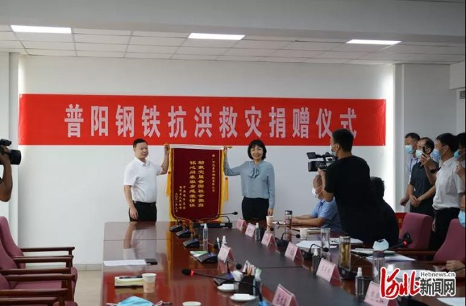 8月4日上午,河北普陽鋼鐵有限公司向河北省邯鄲市捐款1000萬元,用於幫助當地恢複生產和災後重建。