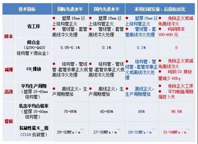 (3)率先開發出高等級油套管、管線管、結構管等熱軋無縫鋼管基於在線控製冷卻和淬火的全新成分體係及工藝技術,實現了熱軋無縫鋼管係列產品的短流程生產。