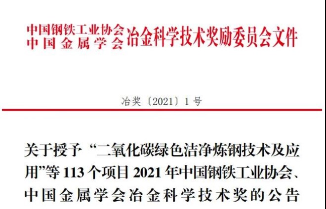 按照《中國鋼鐵工業協會、中國金屬學會冶金科學技術獎獎勵條例》及其《實施細則》規定,經嚴格評審,冶金科學技術獎獎勵委員會決定對113個項目授予2021年中國鋼鐵工業協會、中國金屬學會冶金科學技術獎,其中:“二氧化碳綠色潔淨煉鋼技術及應用”“熱軋無縫鋼管在線組織性能調控關鍵技術、裝備開發及應用”“寬幅超薄鐵基納米晶帶材工程化技術開發及應用”等3個項目授予特等獎、“京唐低碳清潔高效煉鐵工藝和技術集成”等21個項目授予一等獎、“現場混裝炸藥智能管控關鍵技術與裝備研究”等32個項目授予二等獎、“高寒區碎軟岩提質增效控界爆破技術及應用”等57個項目授予三等獎。