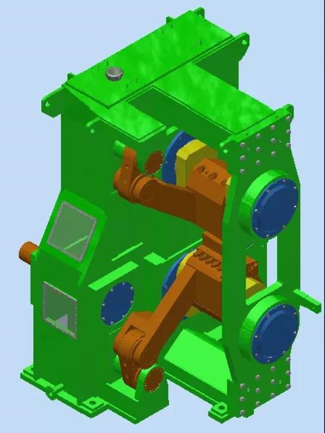 該機型的“0側隙”雙速比傳動係統,既解決了單台飛剪無法同時滿足“低速大斷麵”和“高速小規格”剪jian切qie要yao求qiu的de業ye界jie難nan題ti,又you降jiang低di了le剪jian切qie時shi的de衝chong擊ji性xing,提ti高gao了le剪jian切qie的de穩wen定ding性xing。一yi台tai雙shuang速su比bi飛fei剪jian替ti代dai兩liang台tai傳chuan統tong單dan速su比bi飛fei剪jian,占zhan地di小xiao的de特te點dian為wei場chang地di受shou限xian的de老lao廠chang產chan品pin升sheng級ji改gai造zao項xiang目mu創chuang造zao了le有you利li條tiao件jian,同tong時shi也ye可ke以yi減jian少shao初chu期qi設she備bei投tou資zi,節jie約yue後hou期qi的de備bei件jian和he運yun營ying維wei護hu費fei用yong,剪jian切qie模mo式shi(高速檔、低速擋切換)切換方便,剪機的作業率大幅提高。該機型的高剛度雙支撐對稱結構箱體具有以下顯著優點: