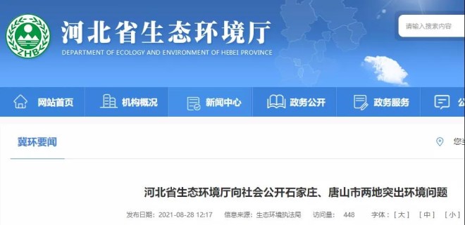 近日,河北省生態環境廳官網對有關環境問題進行了通報。
