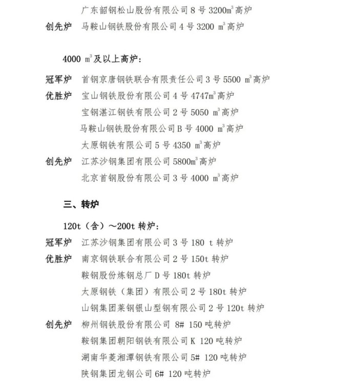 在各參賽企業和廣大職工的共同努力下,2020年(nian)度(du)競(jing)賽(sai)工(gong)作(zuo)已(yi)經(jing)順(shun)利(li)完(wan)成(cheng)。經(jing)競(jing)賽(sai)專(zhuan)家(jia)組(zu)評(ping)審(shen)和(he)競(jing)賽(sai)領(ling)導(dao)小(xiao)組(zu)研(yan)究(jiu),並(bing)在(zai)中(zhong)國(guo)機(ji)械(xie)冶(ye)金(jin)建(jian)材(cai)工(gong)會(hui)全(quan)國(guo)委(wei)員(yuan)會(hui)和(he)中(zhong)國(guo)鋼(gang)鐵(tie)工(gong)業(ye)協(xie)會(hui)網(wang)站(zhan)進(jin)行(xing)了(le)7天公示,最終評選出年度冠軍爐、優勝爐和創先爐。現對獲獎單位進行通報,具體名單附後。