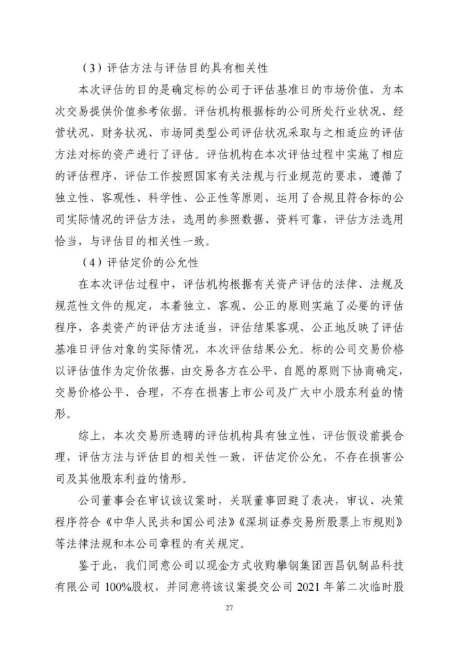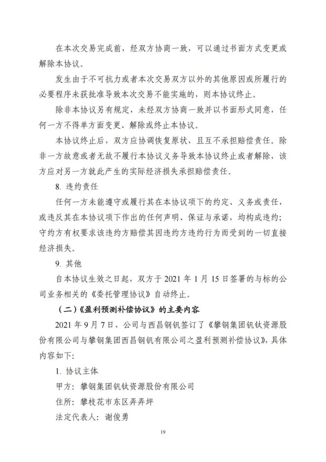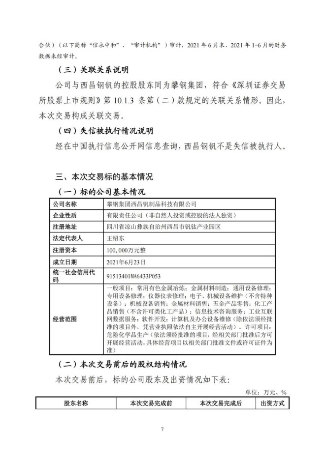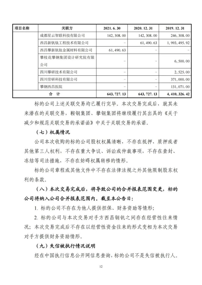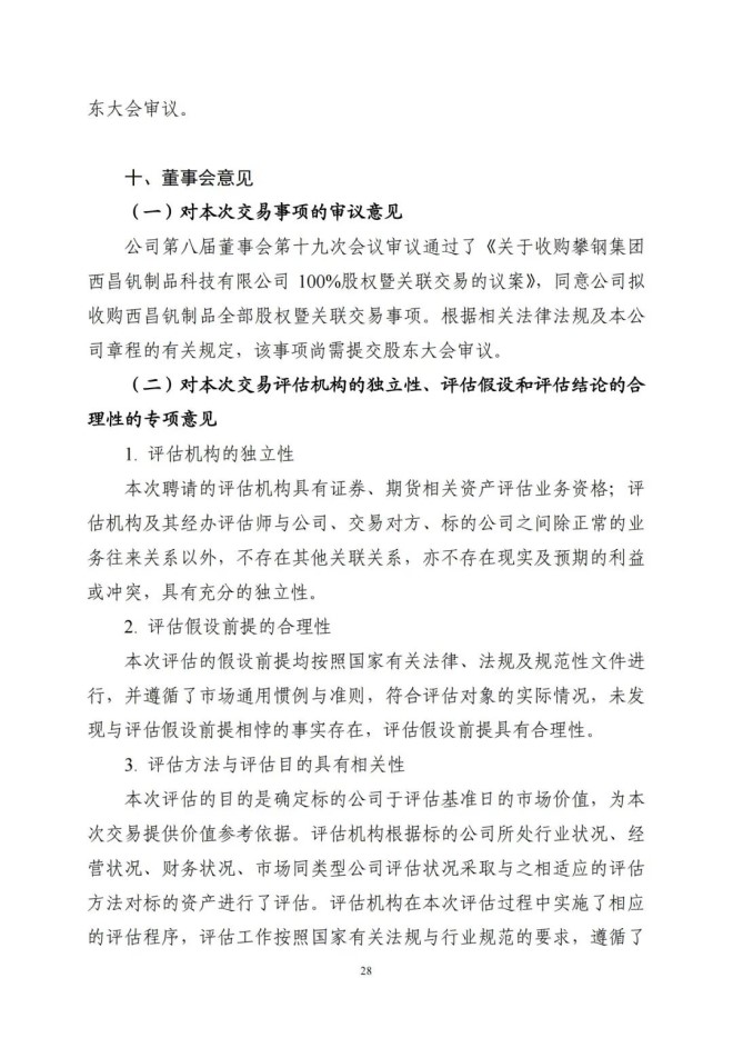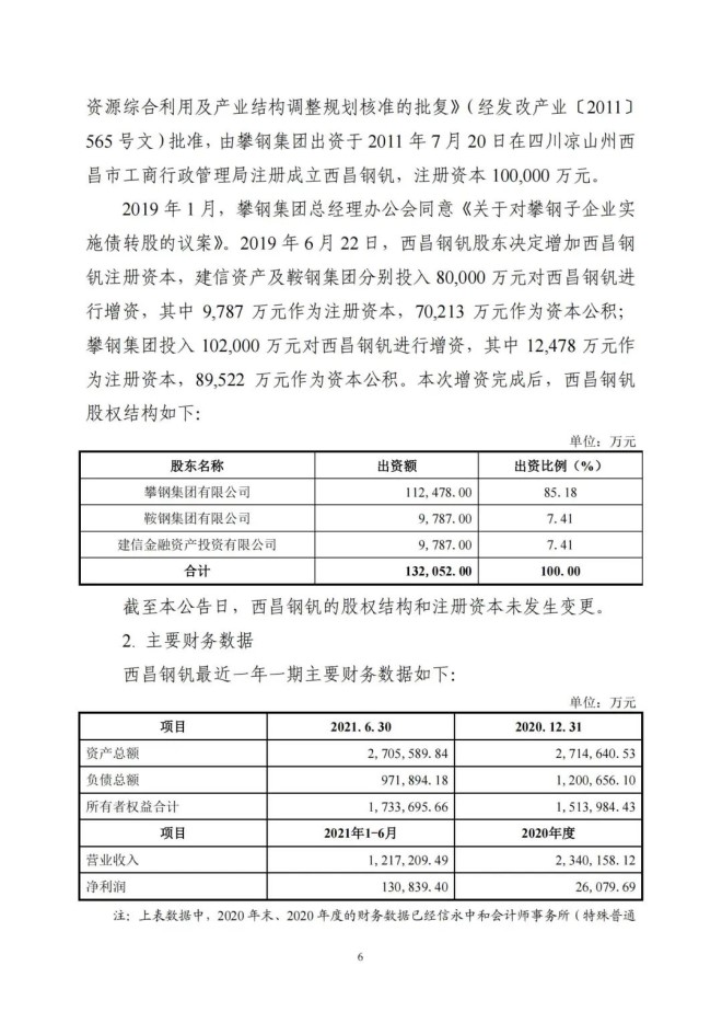 9月8日,攀鋼釩鈦發布了《關於收購攀鋼集團西昌釩製品科技有限公司100%股權暨關聯交易的公告》,該公司擬以支付現金方式,購買公司控股股東攀鋼集團有限公司下屬攀鋼集團西昌鋼釩有限公司持有的攀鋼集團西昌釩製品科技有限公司100%股權。