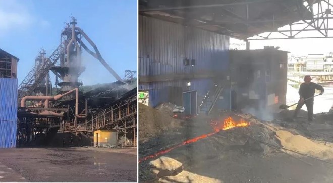 圖2 2021年9月3日,督察組現場檢查時,吉林鑫達鋼鐵有限公司租用吉林京東管業有限公司落後設備違規生產鐵水,汙染治理設施簡陋且不正常運行