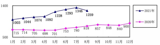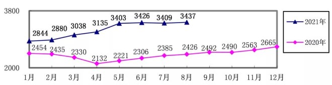 2021年1-8月,煉焦煤累計采購成本同比增長21.65%;冶金焦同比增長40.66%;國產鐵精礦同比增長58.79%,進口粉礦同比增長66.44%;生鐵同比增長38.65%;廢鋼同比增長37.94%。