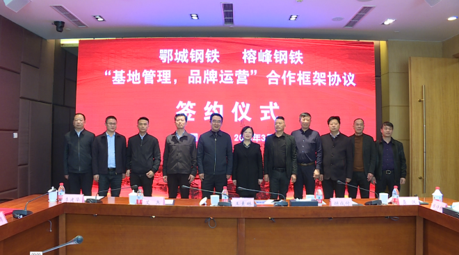 3月25日,鄂城鋼鐵與十堰榕峰鋼鐵和十堰市政府相關領導齊聚十堰,簽訂“基地管理+品牌運營”合作框架協議。