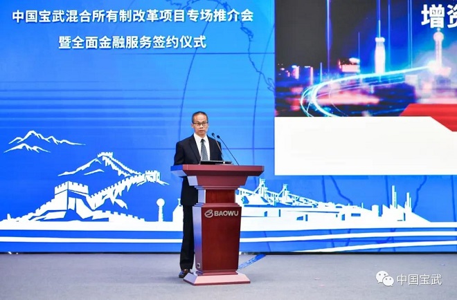 中zhong國guo寶bao武wu作zuo為wei國guo企qi改gai革ge的de排pai頭tou兵bing,認ren真zhen貫guan徹che黨dang中zhong央yang國guo務wu院yuan的de指zhi導dao精jing神shen,深shen入ru實shi施shi國guo企qi改gai革ge三san年nian行xing動dong,積ji極ji穩wen妥tuo深shen化hua混hun合he所suo有you製zhi改gai革ge,一yi批pi混hun改gai項xiang目mu開kai花hua結jie果guo。希xi望wang相xiang關guan企qi業ye以yi此ci為wei契qi機ji,借jie助zhu產chan權quan交jiao易yi的de市shi場chang化hua平ping台tai,通tong過guo混hun合he所suo有you製zhi改gai革ge,積ji極ji引yin入ru高gao匹pi配pei度du、高認同感、高協同性的戰略投資者,不斷調整優化企業股權結構,把推進混合所有製改革同打造原創技術策源地和現代產業鏈鏈長、落實碳達峰碳中和的要求、jiakuaijiansheshijieyiliuqiyedengzhanlvemubiaohezhongdianrenwujieheqilai,tonggexiangguoziguoqigaigerenwuxietongqilai,chongfenyunyongshichanghuajizhi,quanmianjiaqiangdangdelingdaohedangdejianshe,shixianxietongfazhan。