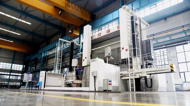 圖為“沈冶重裝”冶礦設備車間球磨機裝配試車現場