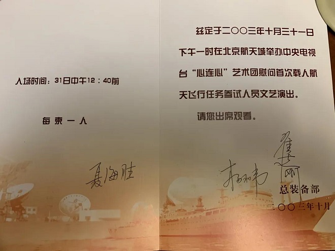 圖為吳溪淳當年的請柬、與航天員的合照(吳溪淳提供)