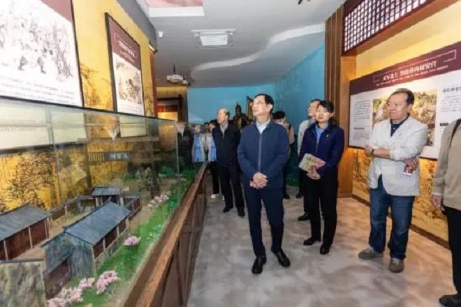 於中海、吳冬華、黃根清、何聰、黃 琴、葉飛、茅俊海、張六喜等領導為“霸王山紀念館”浮雕牆揭幕。