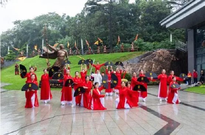 南鋼職工為霸王山紀念館專門編排了舞蹈武術,通背拳第六代傳人、南京市武協副秘書長、江北新區武協常務副秘書長厲恩寶現場武術表演《通背五行劍》。儀式結束後,來賓們饒有興趣地參觀了霸王山紀念館。