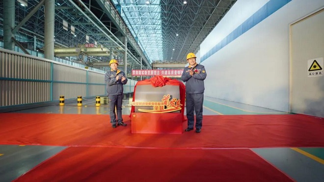 圖為中國寶武寶鋼股份新型耐熱刻痕取向矽鋼機組投產現場。
