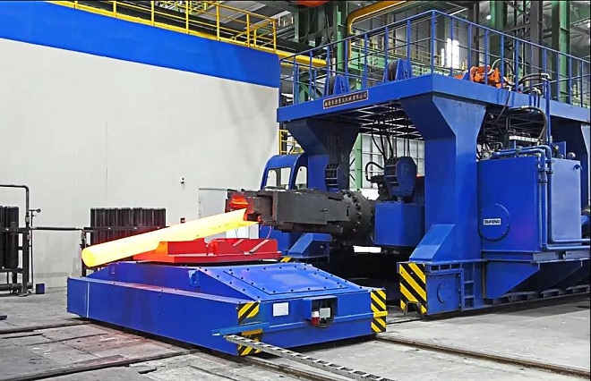 圖為張宣高科特種材料研究製造公司正在生產用於高精尖領域的大規格熱作模具鋼H13鍛棒。