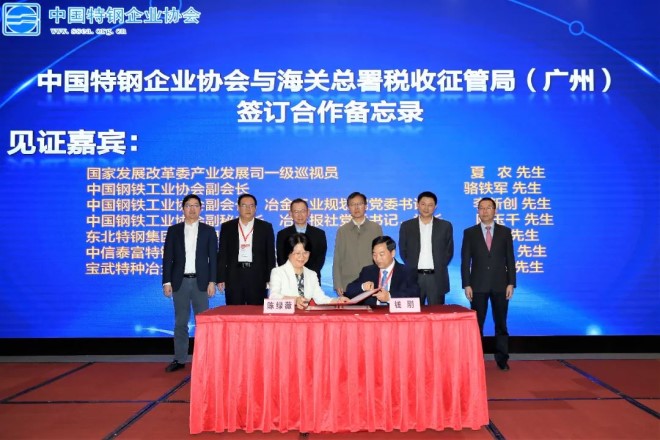 論壇上,中國特鋼企業協會與海關總署稅收征管局(廣州)簽訂合作備忘錄;中國特鋼企業協會專家委員會成立;論壇為符合《工模具鋼自律規範條件》的企業授牌。