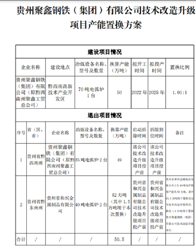 03貴州聚鑫鋼鐵(集團)有限公司技術改造升級項目產能置換方案